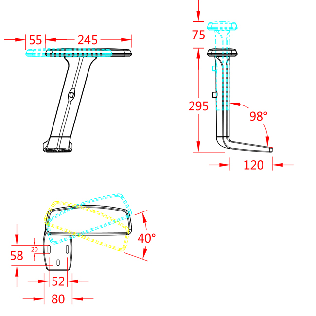 • 材料:尼龙玻纤扶手支架 ,有TPU或PU扶手面选配。